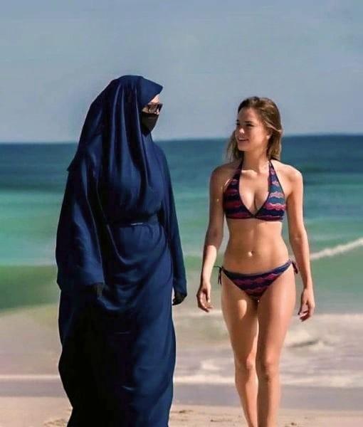 Az útcán se lehet látni hard core muszlimokat.Persze él itt sok muszlim, de max egy kendő a fejen, normal, de hosszú női ruha, gatya.